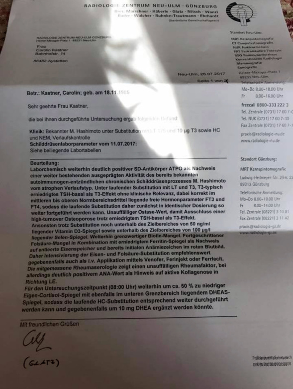 Fazit: Ein dezidierte Diagnostik und die zunächst parenterale und dann ausreichende konsequente orale Supplementierung mit geeigneten bevorzugt biologischen Präparaten ohne chemische Zusatz- und Füllstoffe wie Sorbitol, Lactose o.ä. ist zu empfehlen.